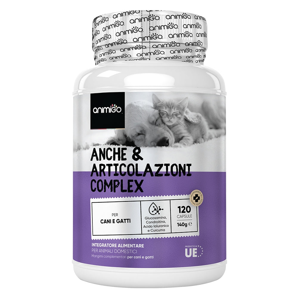 Animigo Hip & Joint Complex è un integratore naturale con Glucosamina e Condroitina per cani e gatti, sviluppato per favorire una migliore mobilità ed una migliore salute delle articolazioni dei tuoi piccoli amici, soprattutto durante la fase di invecchiamento.